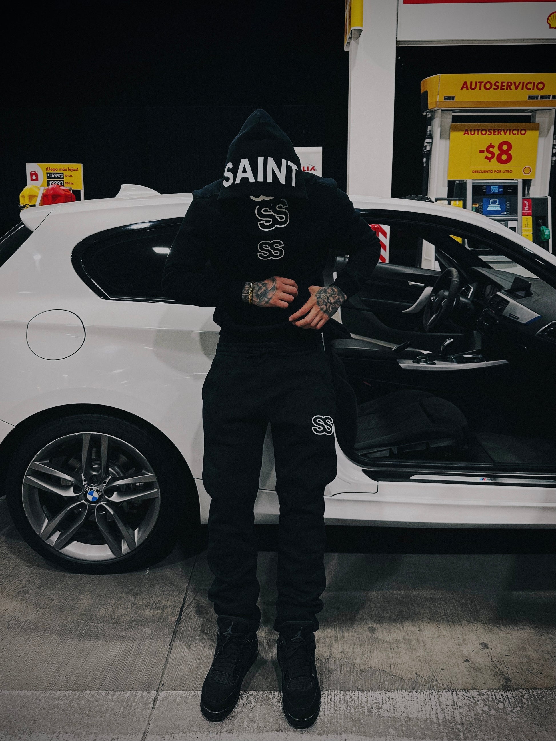Diseño en capucha: “SAINT” en contorno con textura “3D”